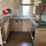 Composée d'un vestiaire et d'un coin salon, Mobil Home Dans Le Camping 4 Etoiles Le Montourey offre des conforts tels qu'un fer à repasser et une table à repasser, ainsi qu'une TV à écran plat avec des chaînes satellite. Cette villa comprend une salle de bains avec des toilettes séparées et une douche.